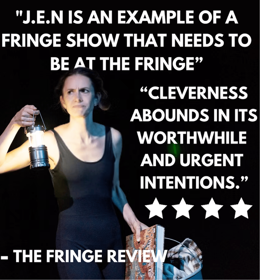 "J.E.N is an example of a fringe show that needs to be at the Fringe... Cleverness in the script abounds in its worthwhile and urgent intentions." - Praise for J.E.N. from FringeReview